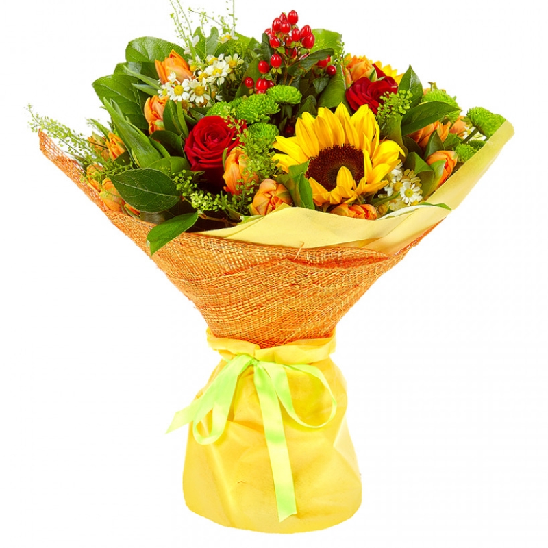 Гиперикум, Подсолнух, Роза, Тюльпан, Хризантема |